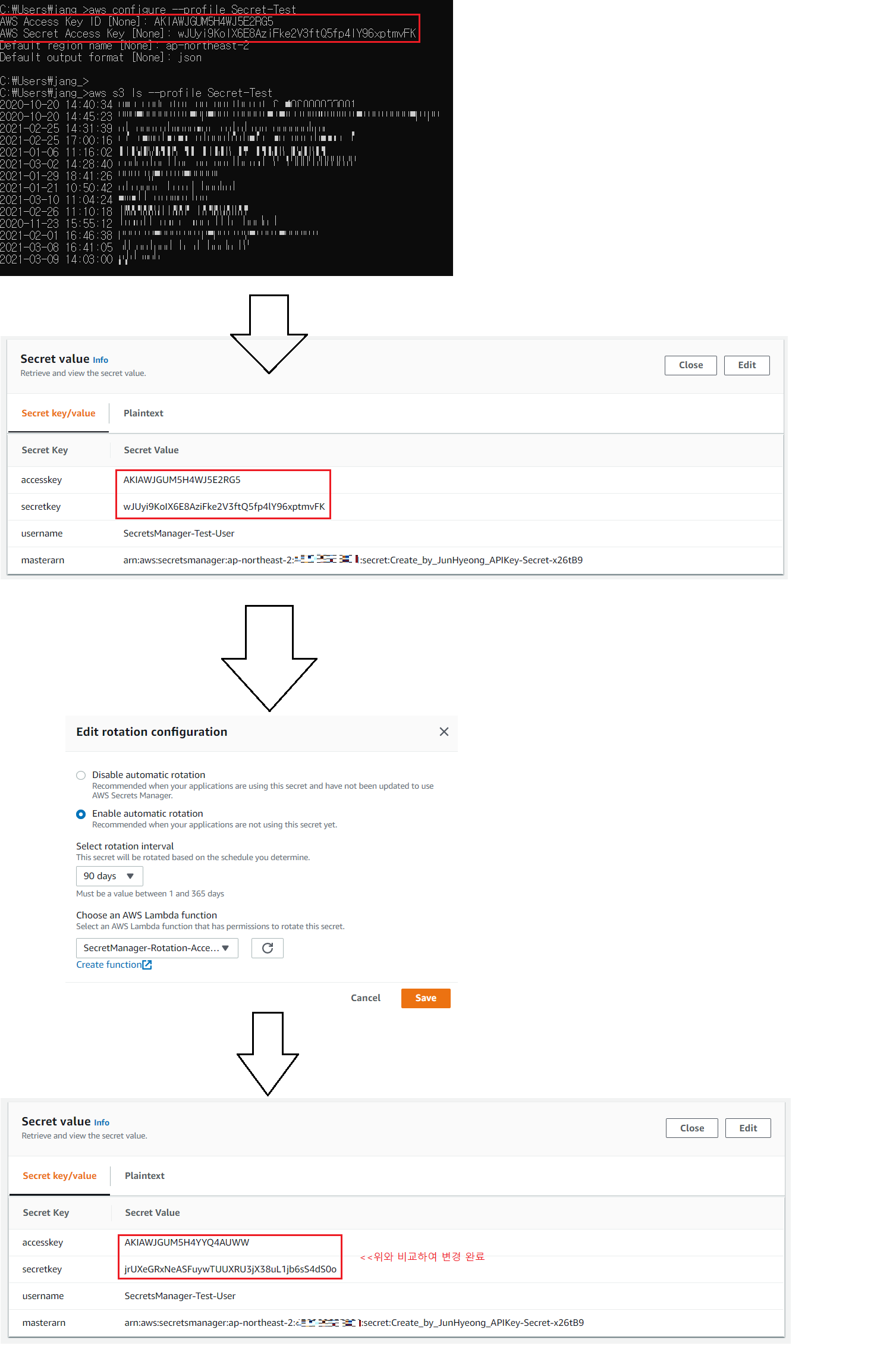 이렇게 변경되는 Access Key를 애플리케이션 단에서 조회하고 신규 Access Key로 교체하도록 로직 수정을 권고하고, 오래된 Access Key는 삭제하도록 하면 됩니다.