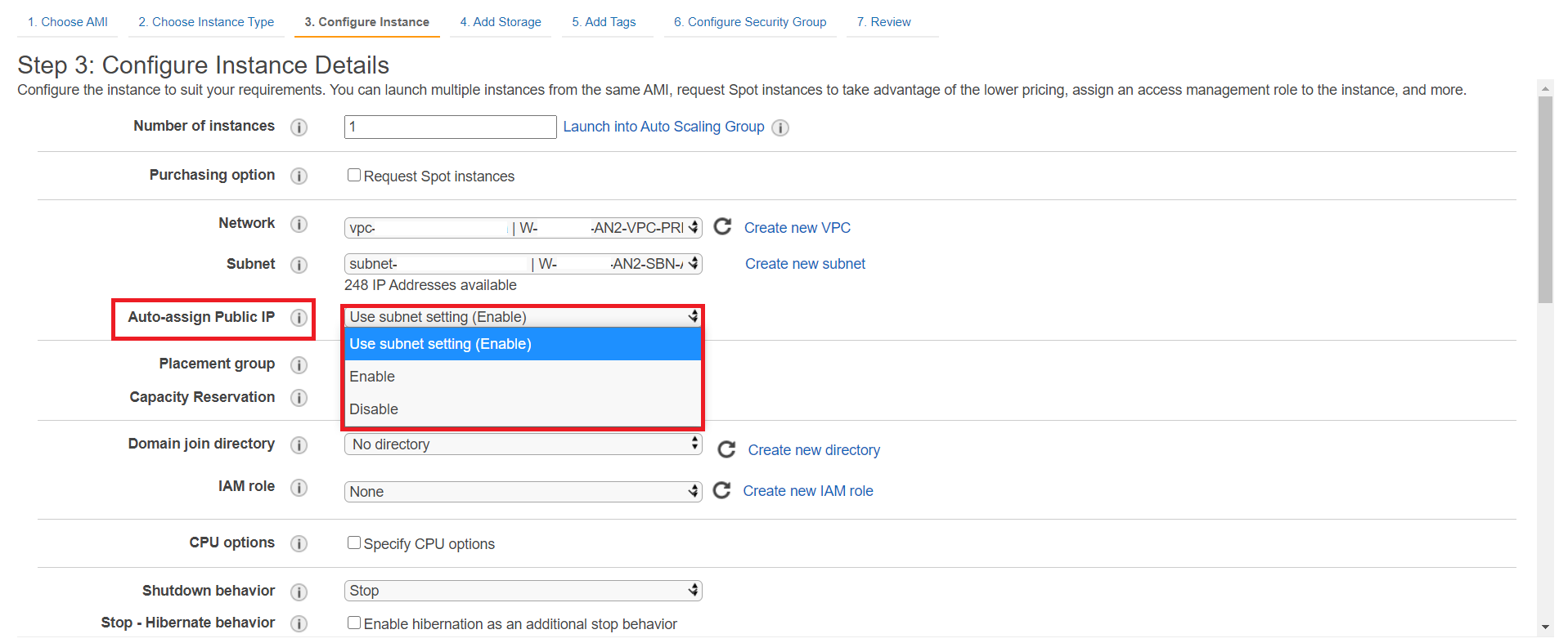 여튼.. 만약 Subnet에 Auto-assign Public IP를 체크해놓으셨다면, Use subnet setting (Enable) 일것이고,