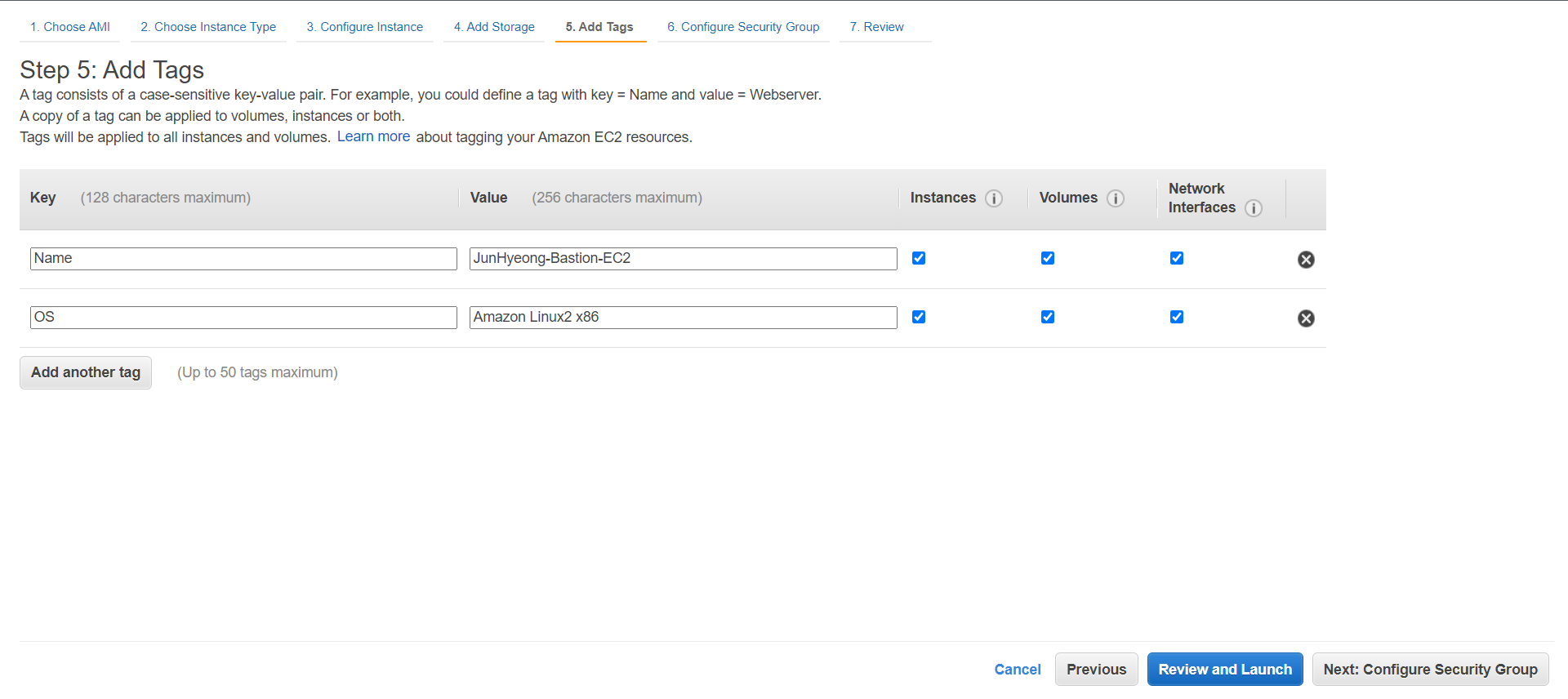 다음은 Next: Add Tags로 넘어가겠습니다.
