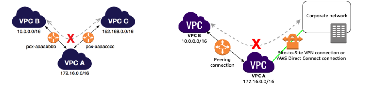 위와 같은 그림에서, On-Premise와 A VPC는 통신하지 못합니다.