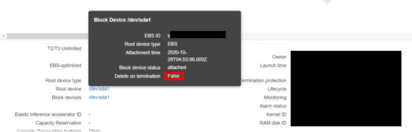 - 만약, 이미 실행중인 Instance(Live Service Instance)에 부착된 EBS Volume의 Delete on Termination 속성을