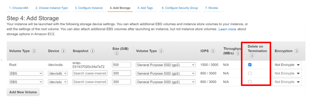 - EC2 Instance를 만들 때 기본적으로 Root Volume에 대해서는 Delete on Termination속성이 True이고,