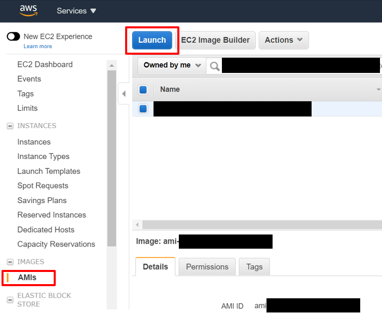 - AWS Web Console - EC2 - AMIs 에서 기존 Instance의 AMI를 선택하여 Launch.