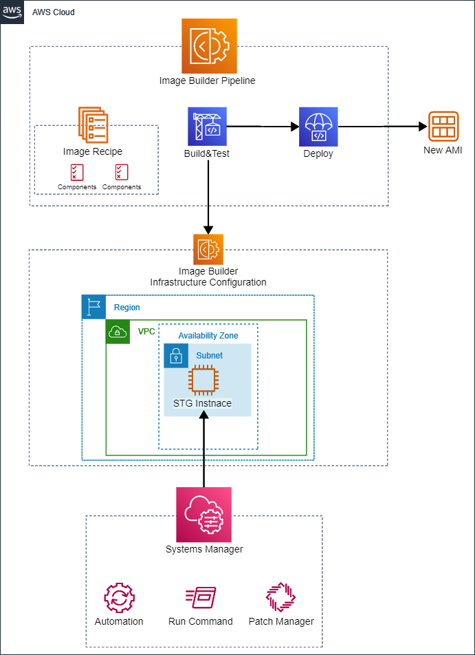 또한, 해당 빌드 및 테스트 인스턴스에서는 Image Recipe를 토대로 Systems Manager Automation이