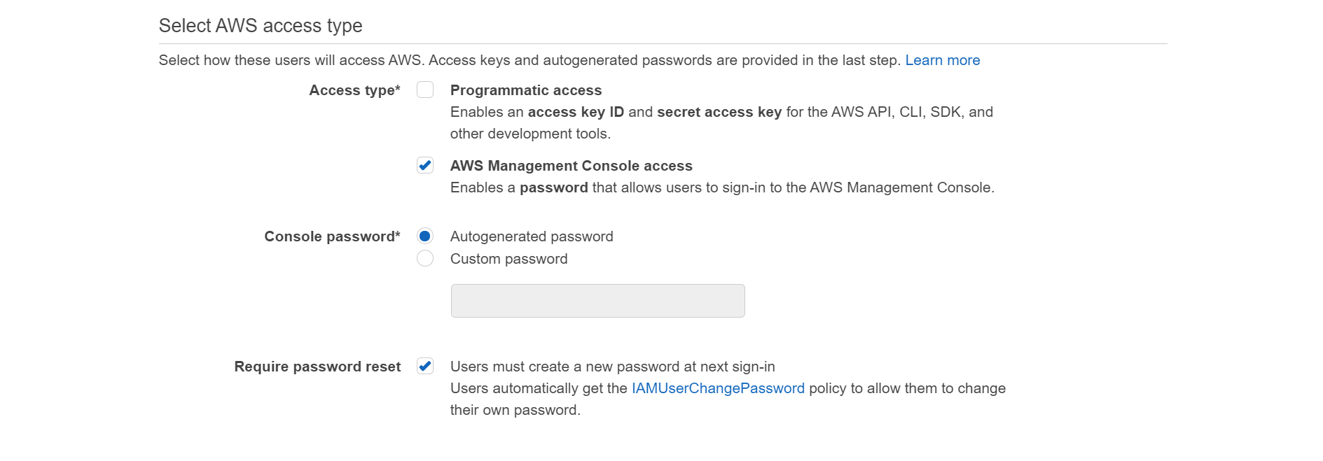 먼저 1번 항목은 무슨말 이냐면.. IAM User을 생성해줄 때 아래와 같이 "사용자가 로그인시 패스워드를 변경하도록 함"