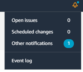 AWS 상단 종 모양의 Notification에 표시됩니다.